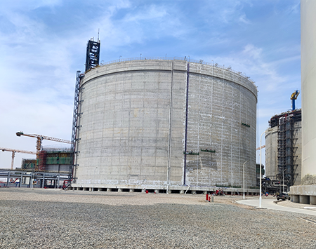 北燃天津南港LNG應急儲備項目的薄膜型LNG儲罐是目前全球最大的陸上LNG薄膜罐,是為北京市提供安保用氣、加速京津冀一體化的重點項目,我司承攬此項目二、三階段共計六臺薄膜罐的防潮層施工工作